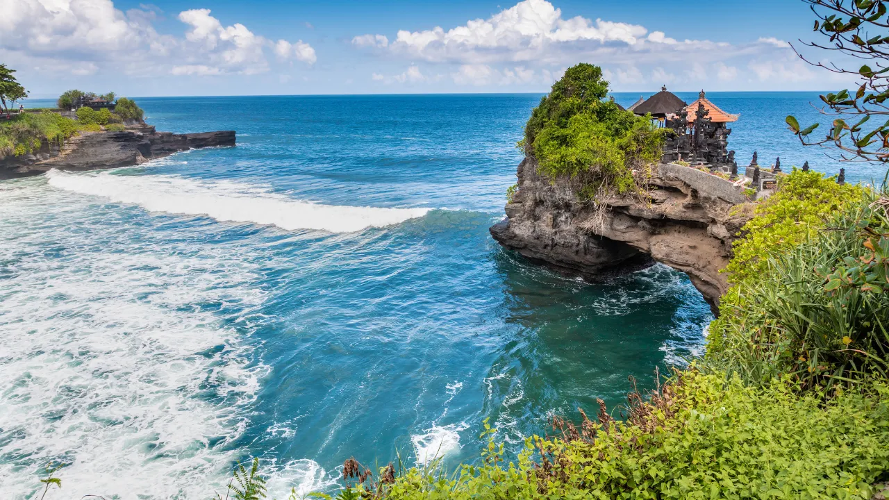 Tanah Lot is one of Bali’s most famous landmarks, renowned for its unique offshore setting and cultural significance. Perched on a rock formation surrounded by crashing waves, this iconic sea temple is dedicated to the guardian spirits of the sea. Visitors can enjoy the mystical atmosphere, explore the surrounding temple complex, and capture stunning photographs, especially during sunset when the horizon glows in golden hues. It’s not only a spiritual site but also a symbol of Bali’s timeless beauty.