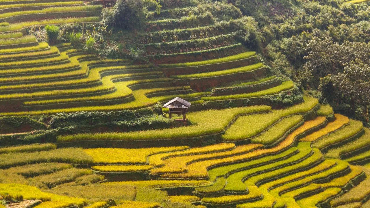 Famous terraced rice paddies with swing and walking paths.