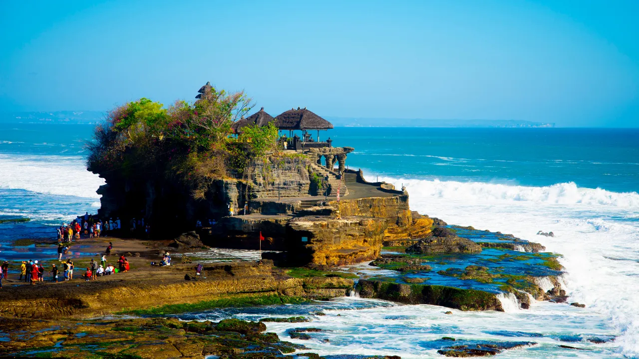 One of Bali’s most iconic sea temples perched on a rock formation, best visited at sunset for dramatic ocean views.